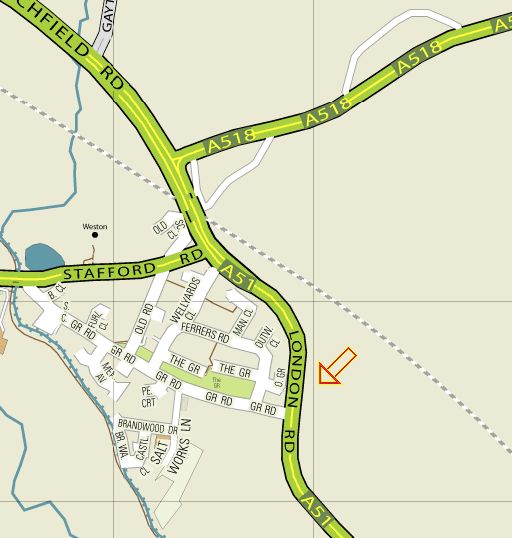 Weston Methodist Church is located on the main A51 trunk road about 200 metres south of the traffic lights junction with the A518 road from Stafford.